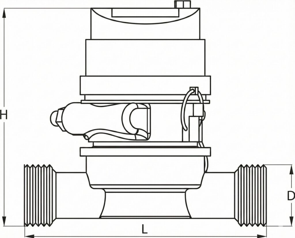 Model Series DN (mm) Nominal Flow Rate (qp)[m³/h] Min. Flow Rate (qi)[m³/h] Length (L)[mm] Height (H)[mm] Width (W)[mm]