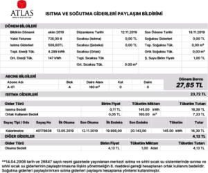 - Pır: Bağımsız bölümün ısı sayacına göre tüketim tutarı (TL)